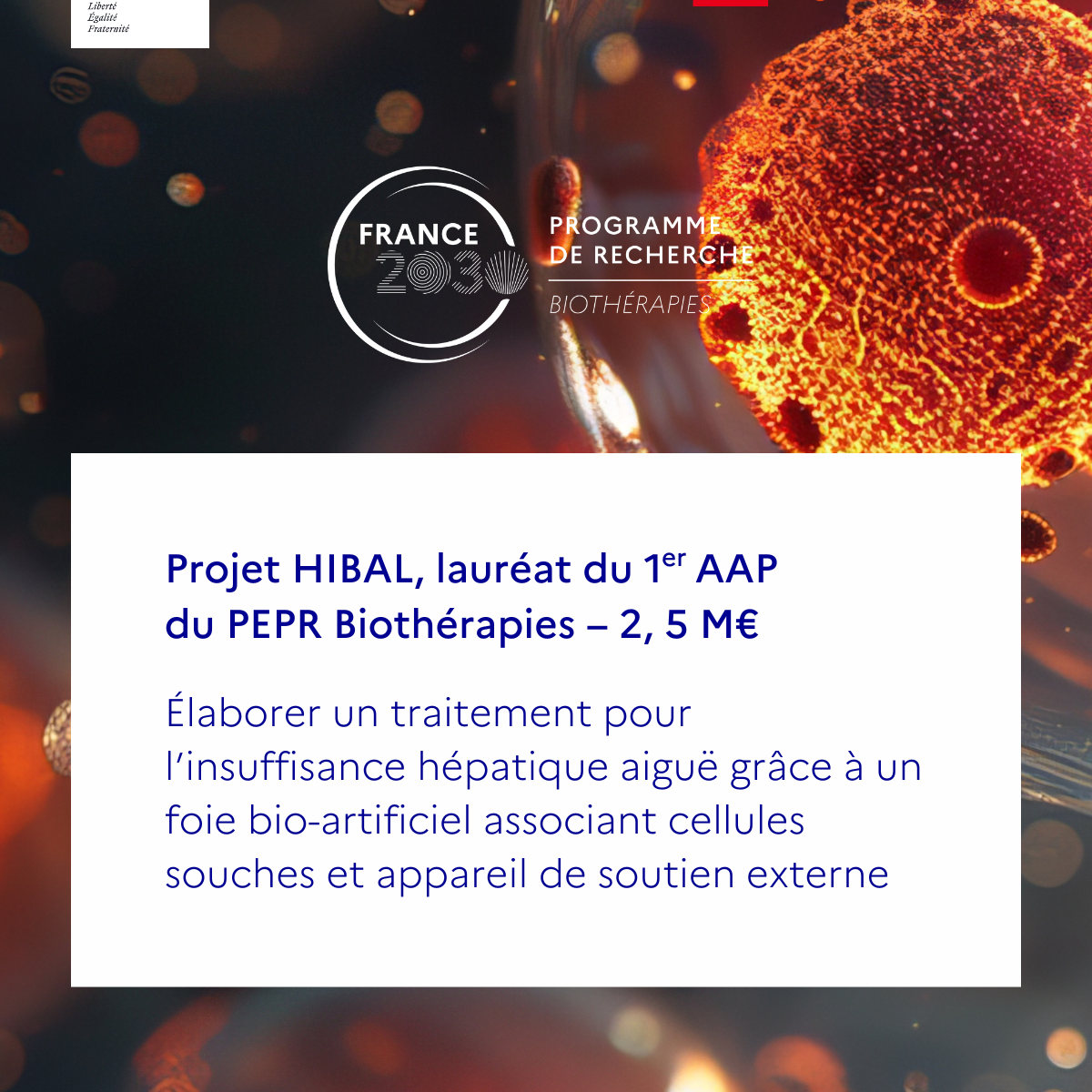 • Projet HIBAL (2,5 M€) : Conception d’un foie bio-artificiel associant cellules souches et dispositif externe de soutien, en vue de traiter efficacement l’insuffisance hépatique aiguë.